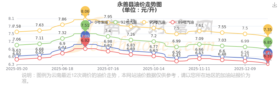 永善縣歷史油價走勢圖