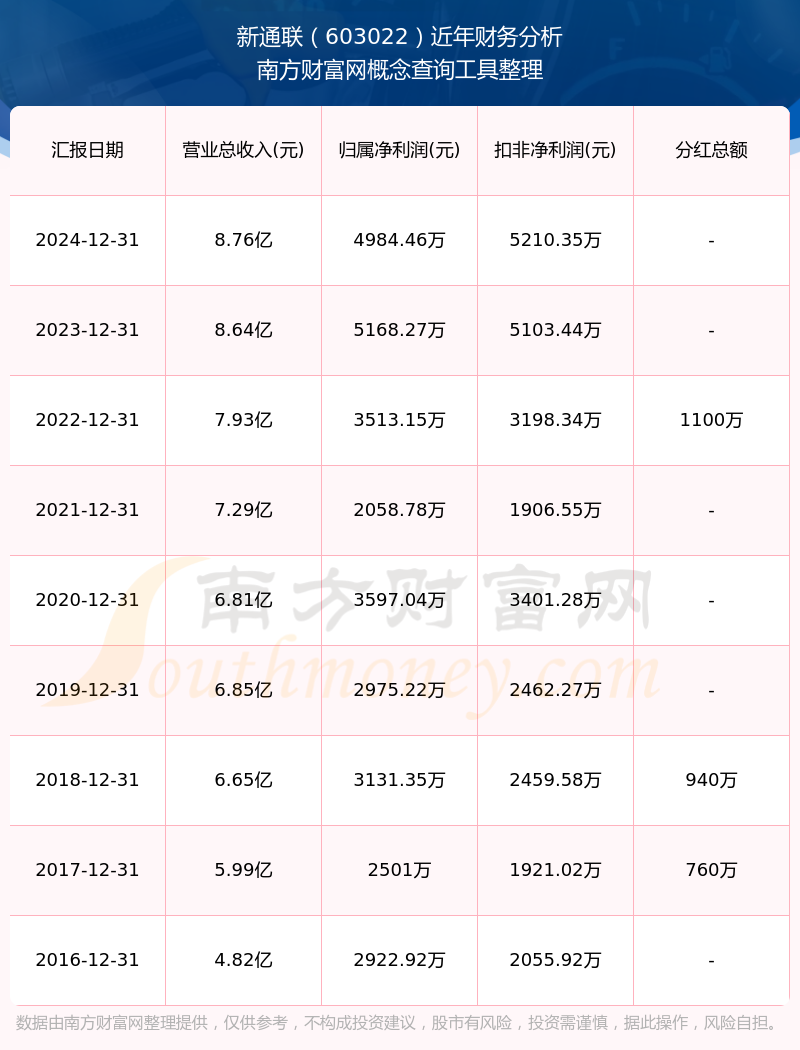 新通聯(lián)歷年分紅派息情況如下表所示: