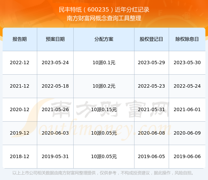 民豐特紙最新一次公布的分紅方案:10派0.1元。