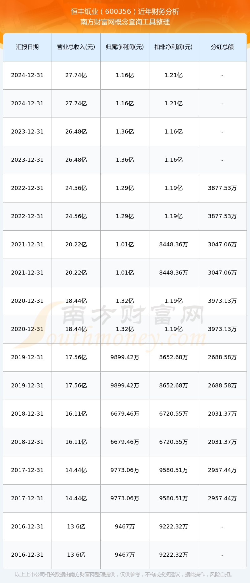 恒豐紙業(yè)歷年分紅派息情況如下表所示: