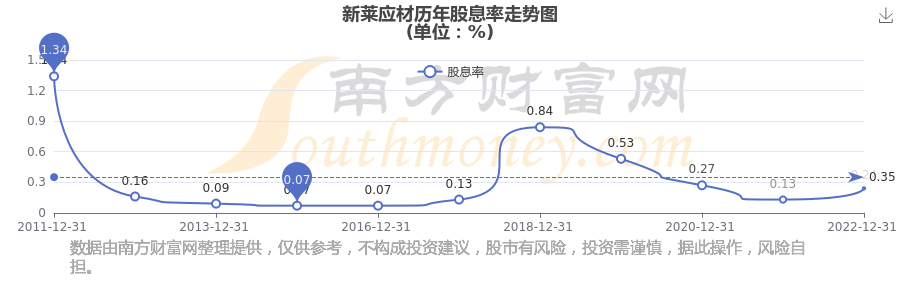 近年新萊應(yīng)材年度股息率走勢如下圖: