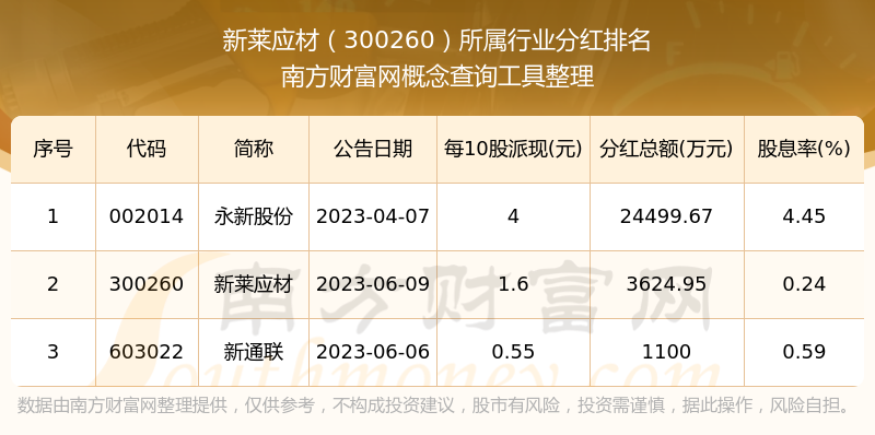 二、新萊應(yīng)材300260行業(yè)分紅排名