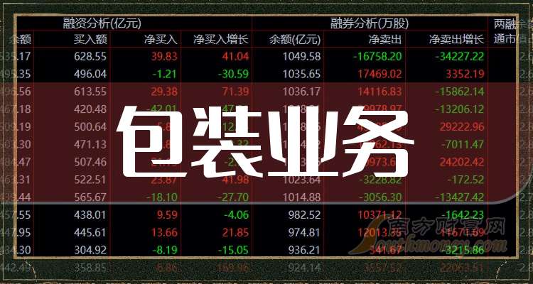 據(jù)南方財(cái)富網(wǎng)概念查詢工具數(shù)據(jù)顯示,相關(guān)包裝業(yè)務(wù)概念上市公司有: