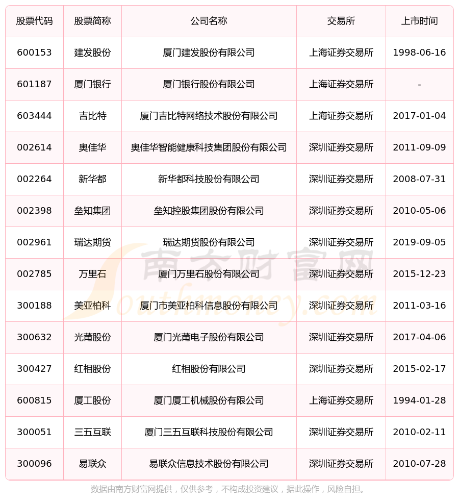 在廈門思明區(qū)的上市公司中,業(yè)績排名靠前的是: