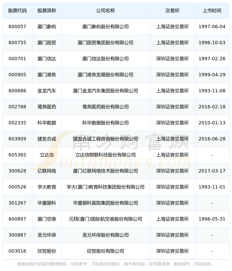 截至10月26日,廈門湖里區(qū)共有15家上市公司,南方財(cái)富網(wǎng)趨勢(shì)選股系統(tǒng)為您整理了廈門湖里區(qū)在A股上市的公司。