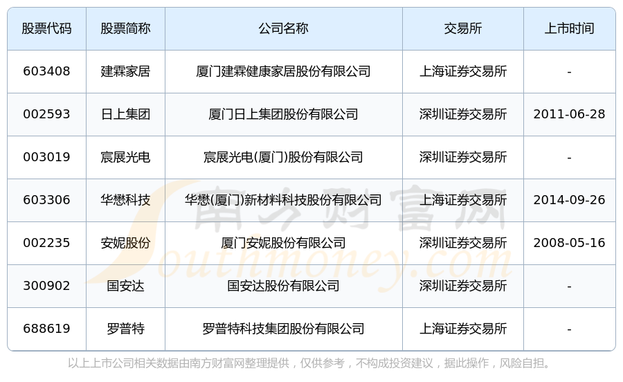 截至10月26日,廈門集美區(qū)共有7家上市公司,南方財富網(wǎng)趨勢選股系統(tǒng)為您整理了廈門集美區(qū)在A股上市的公司。