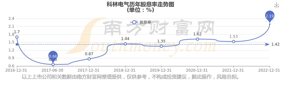 近年科林電氣年度股息率走勢(shì)如下圖: