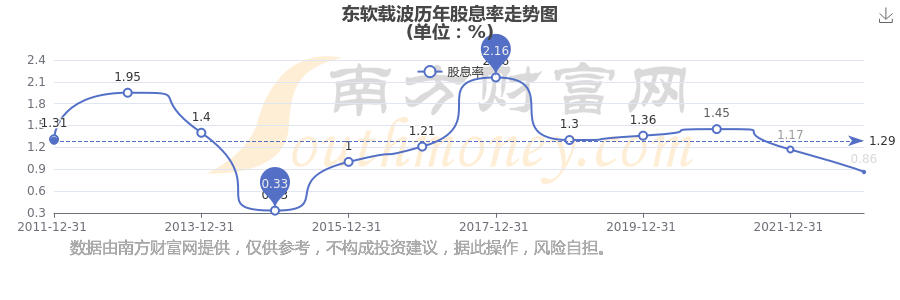 近年東軟載波年度股息率走勢如下圖: