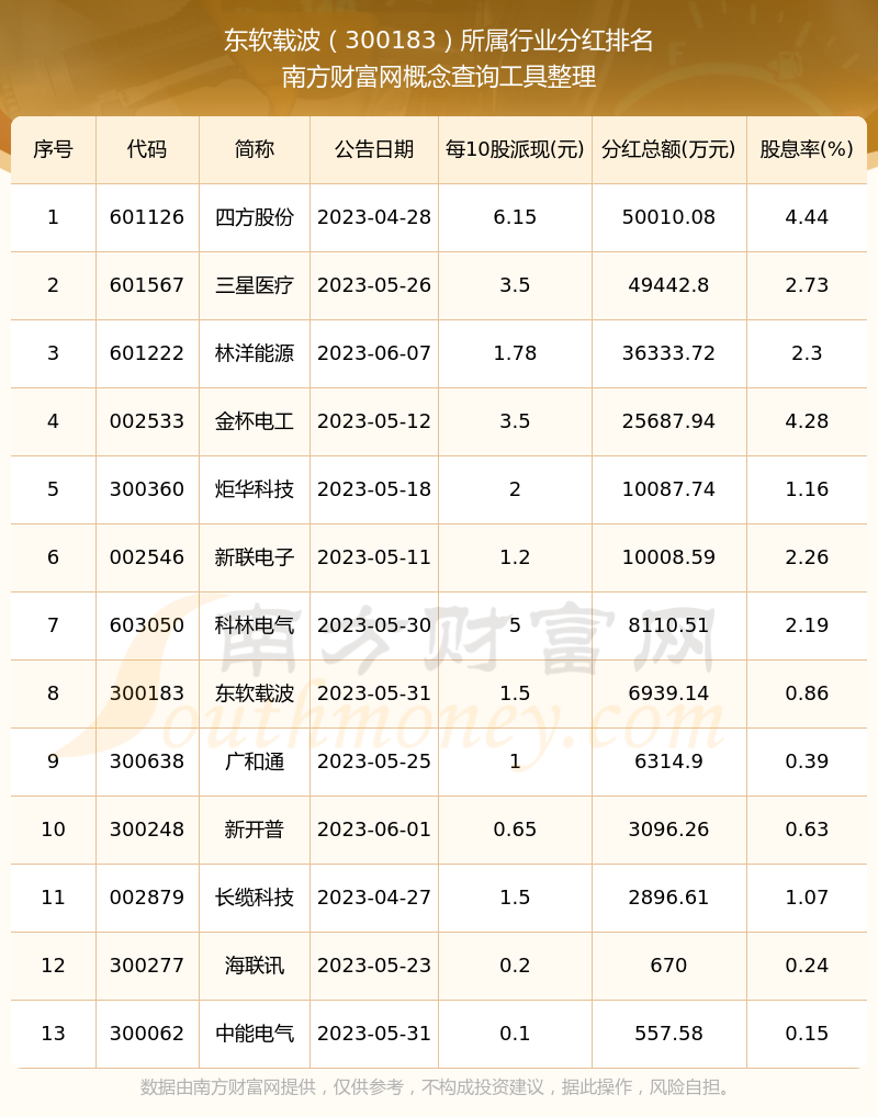 二、東軟載波300183行業(yè)分紅排名