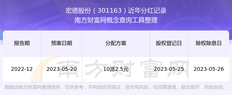 一、宏德股份(301163)股票分紅記錄