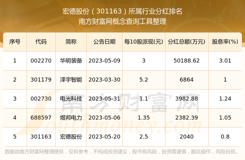 二、宏德股份301163行業(yè)分紅排名