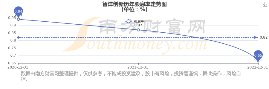 近年智洋創(chuàng)新年度股息率走勢如下圖: