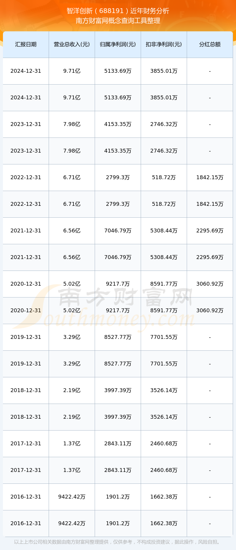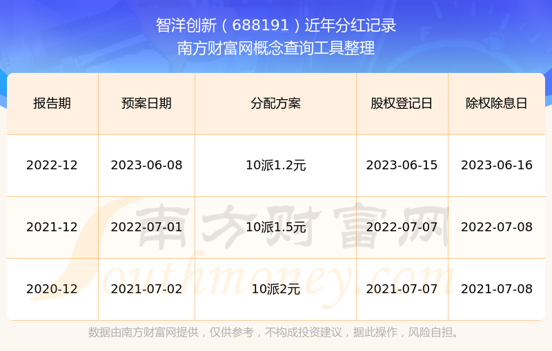 智洋創(chuàng)新歷年分紅派息情況如下表所示: