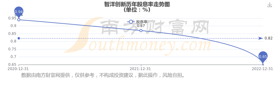 智洋創(chuàng)新歷年股息率走勢(shì)如下圖: