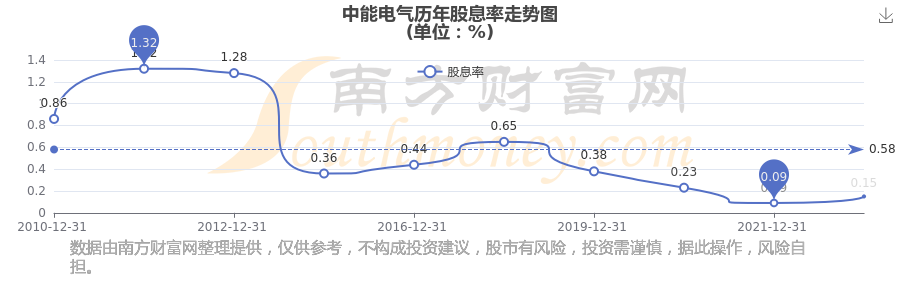 中能電氣最新一次公布的分紅方案為10派0.1元。本次權(quán)益分派股權(quán)登記日為2023年6月7日,除權(quán)除息日為2023年6月8日,派息日為2023年6月8日。