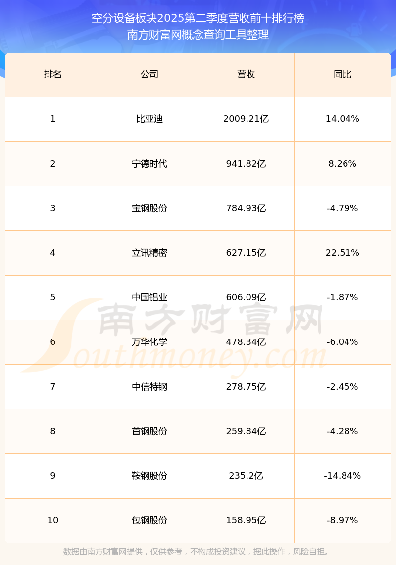 按照南方財(cái)富網(wǎng)概念查詢工具統(tǒng)計(jì),該股所屬板塊為空分設(shè)備板塊,該板塊共有56只股票,福斯達(dá)2025第二季度營(yíng)收在該板塊中排名為第32名,該板塊2025第二季度營(yíng)收排名前十的股票如下表: