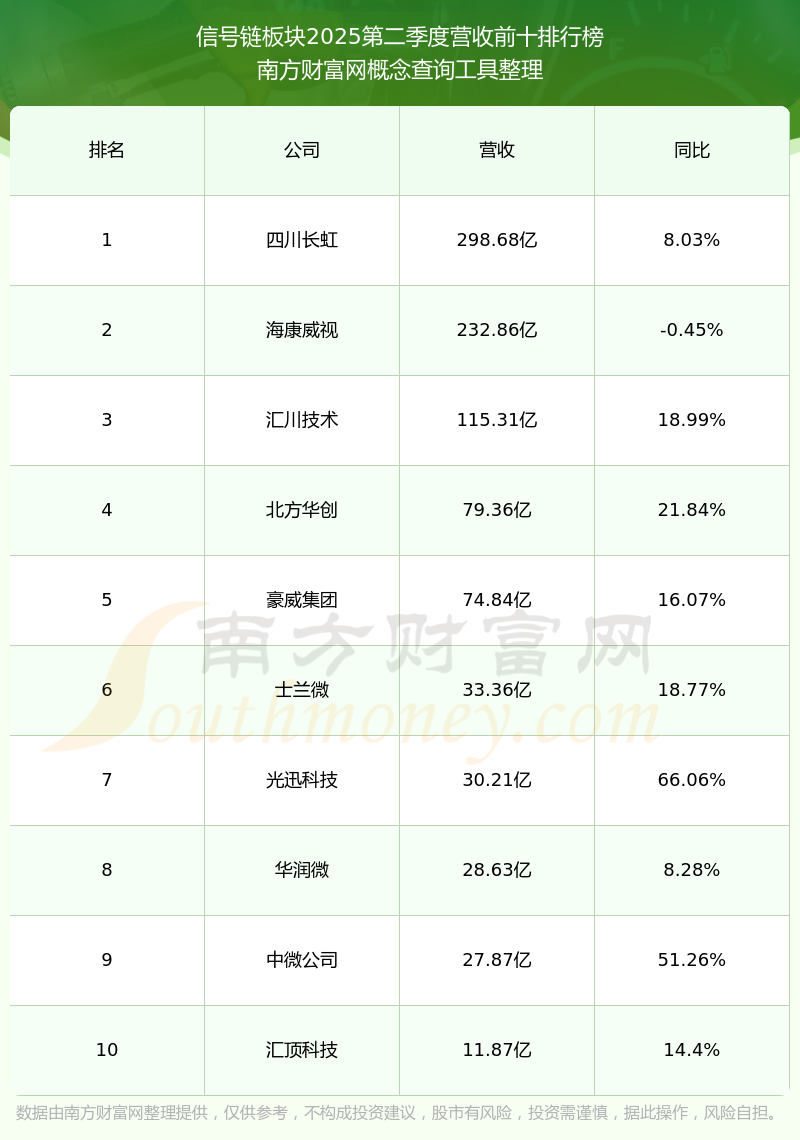 按照南方財富網(wǎng)概念查詢工具統(tǒng)計,該股所屬板塊為信號鏈板塊,該板塊共有31只股票,帝奧微2025第二季度營收在該板塊中排名為第29名,該板塊2025第二季度營收排名前十的股票如下表: