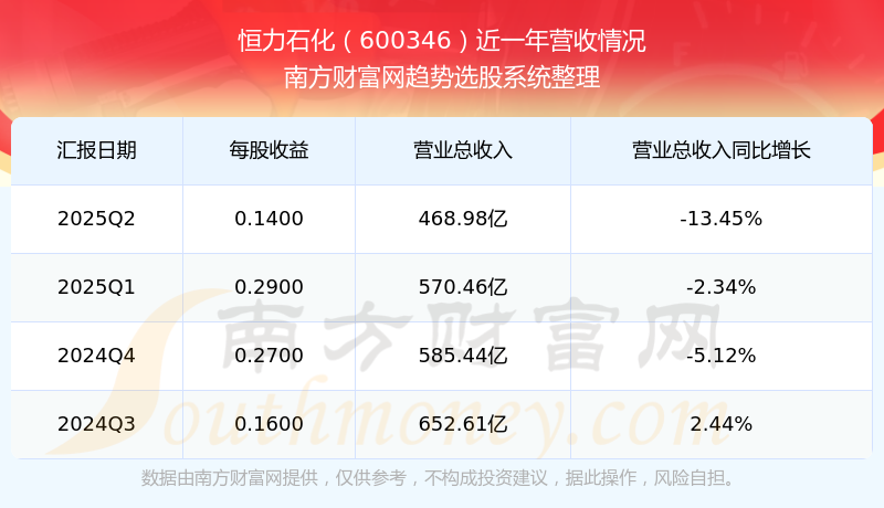 恒力石化股票近一年營收情況如下表: