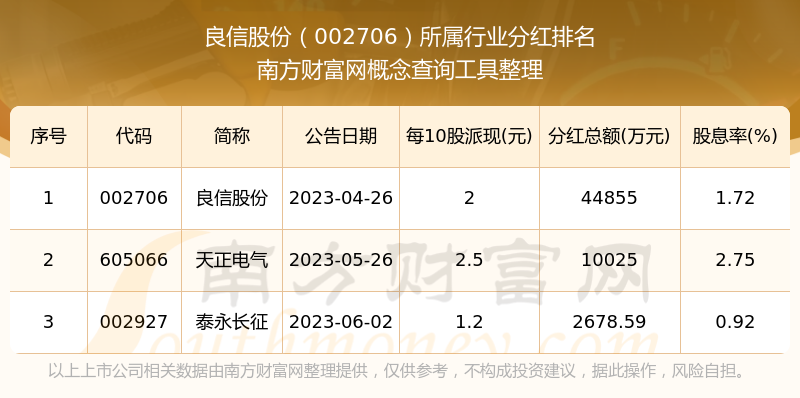 按照南方財(cái)富網(wǎng)趨勢選股系統(tǒng)統(tǒng)計(jì),良信股份所屬行業(yè)為配電電器行業(yè),配電電器行業(yè)分紅排名情況如下表: