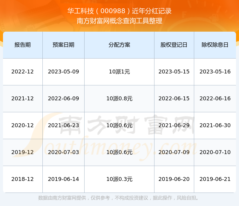 華工科技歷年分紅派息情況如下表所示: