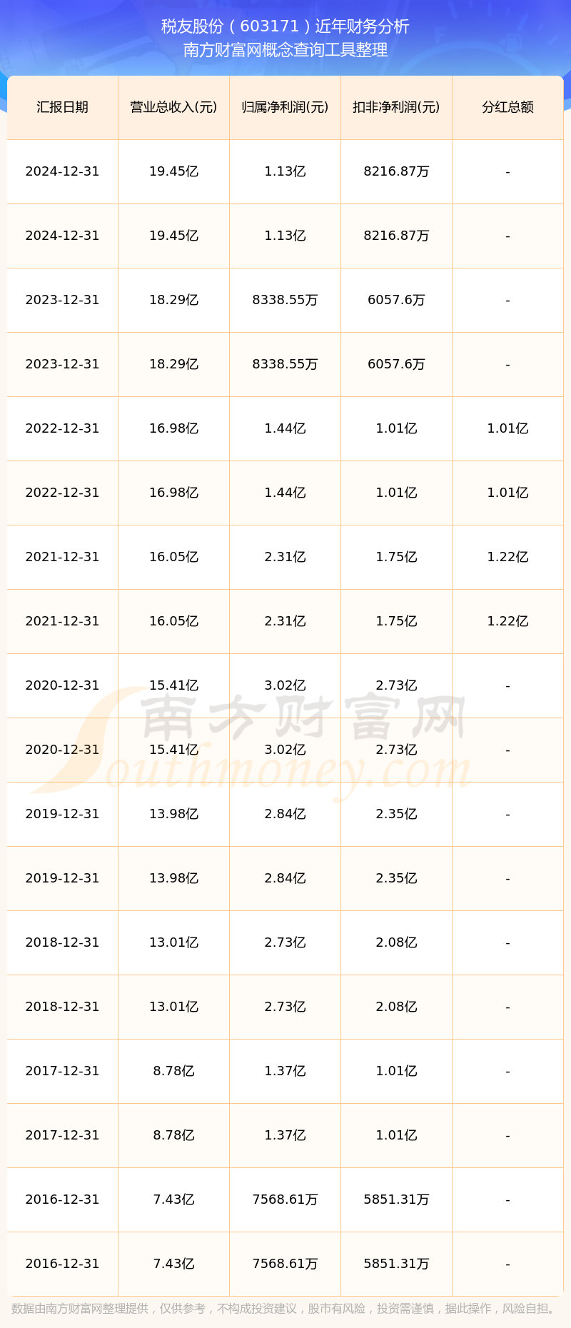 2024年稅友股份總營(yíng)收19.45億,同比增長(zhǎng)6.38%;凈利潤(rùn)1.13億,同比增長(zhǎng)35.01%;銷售毛利率55.21%。