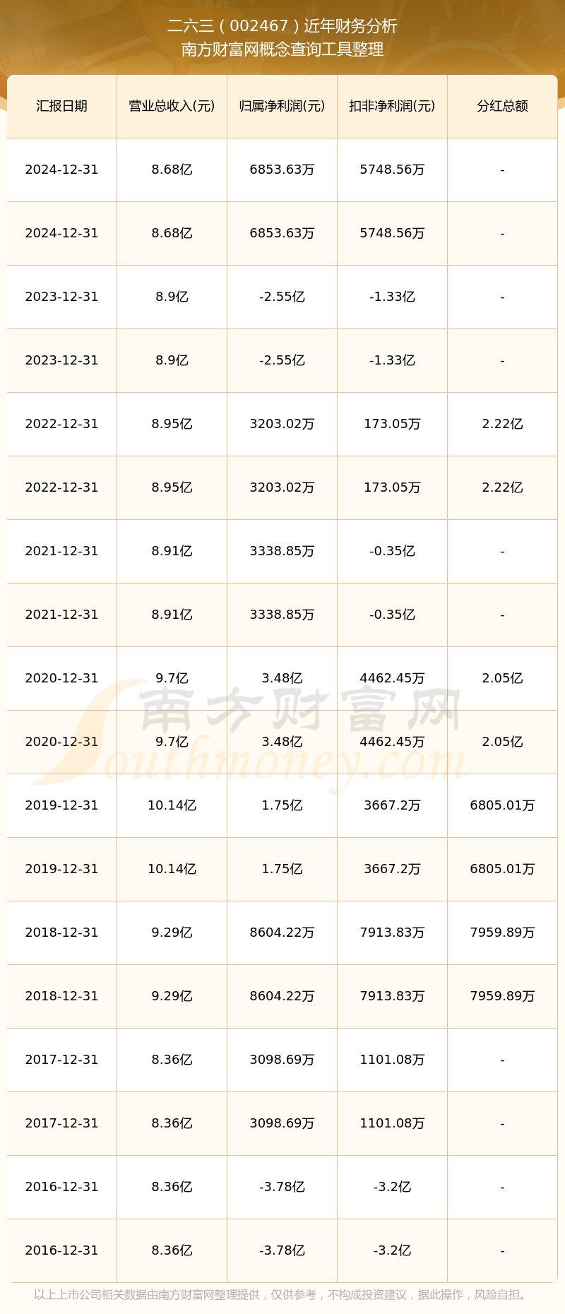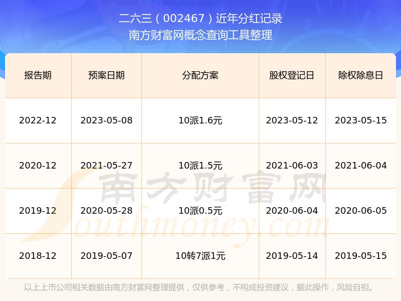 二六三歷年分紅派息情況如下表所示: