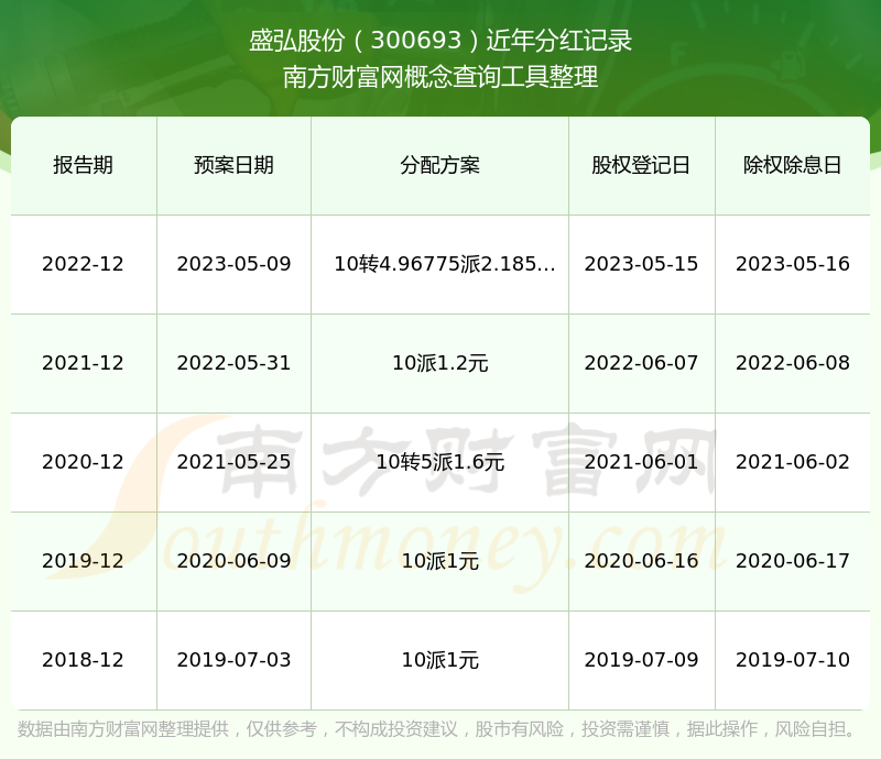 一、盛弘股份(300693)股票分紅記錄