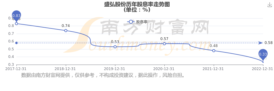 近年盛弘股份年度股息率走勢如下圖: