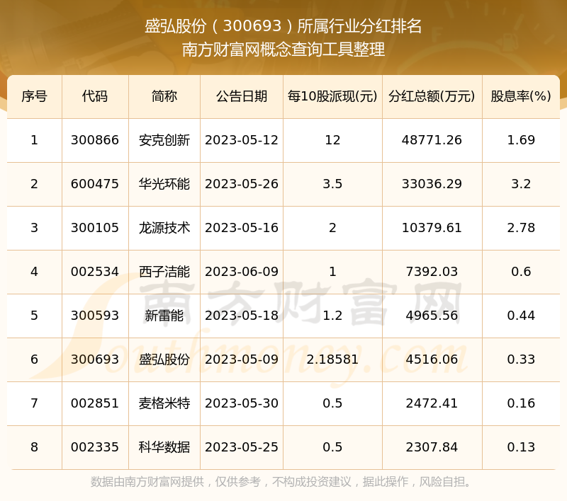 二、盛弘股份300693行業(yè)分紅排名