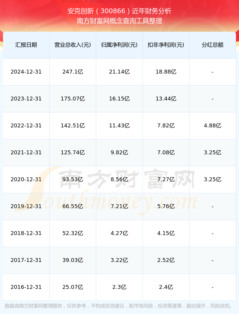 安克創(chuàng)新歷年分紅派息情況如下表所示: