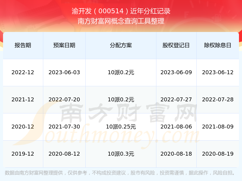 渝開發(fā)最新一次公布的分紅方案:10派0.2元。