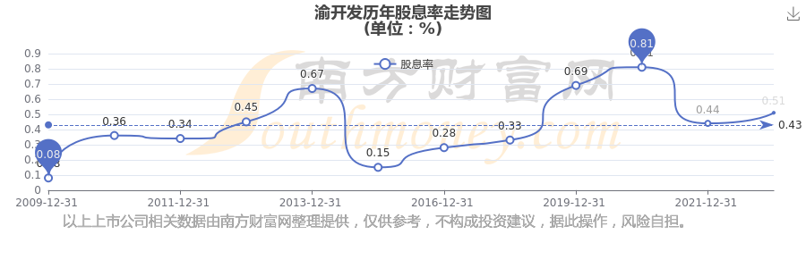 近年渝開發(fā)年度股息率走勢如下圖: