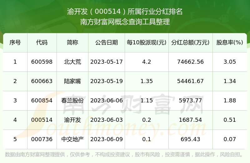 二、渝開發(fā)000514行業(yè)分紅排名