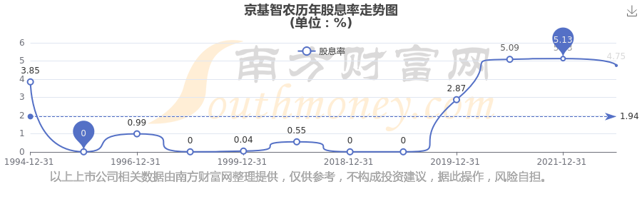 近年京基智農(nóng)年度股息率走勢如下圖: