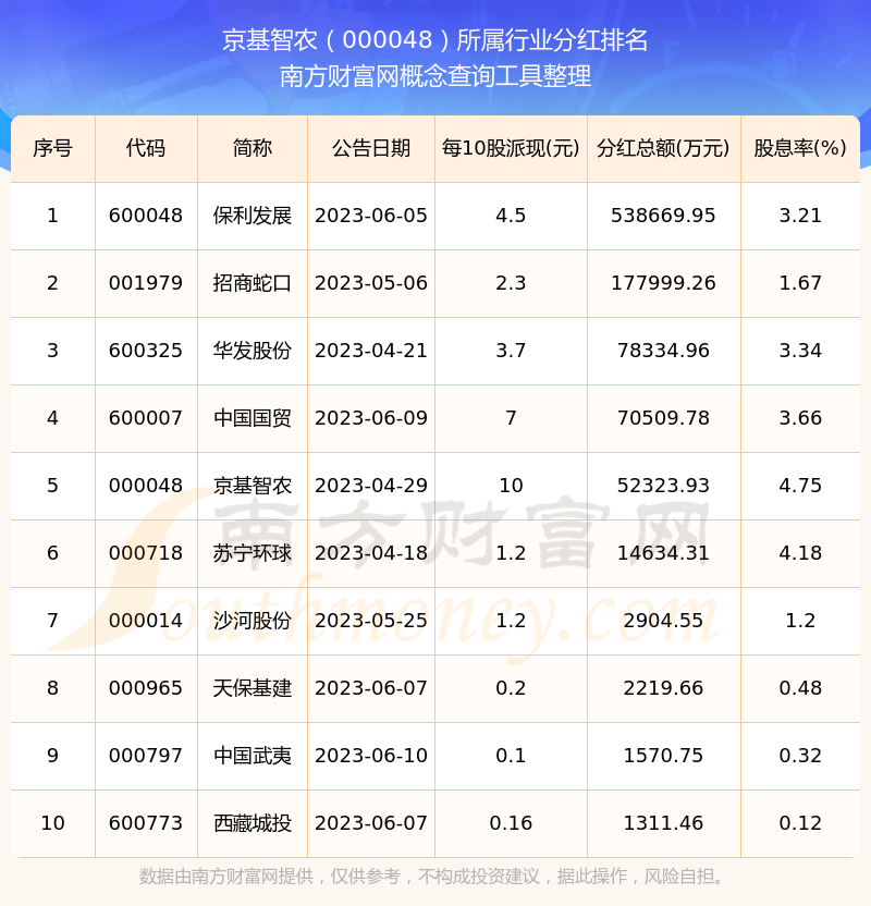 二、京基智農(nóng)000048行業(yè)分紅排名
