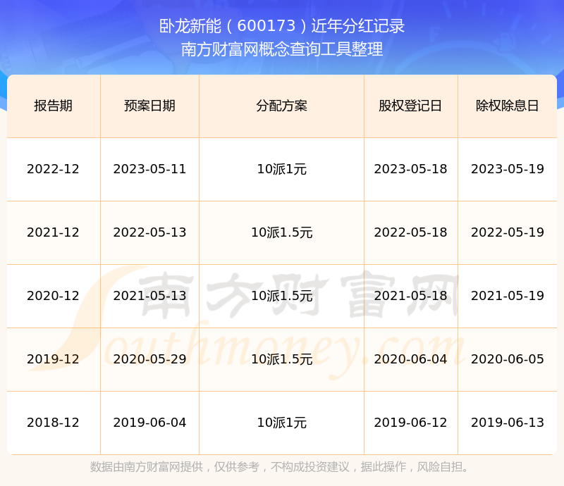 臥龍新能最新一次公布的分紅方案:10派1元。