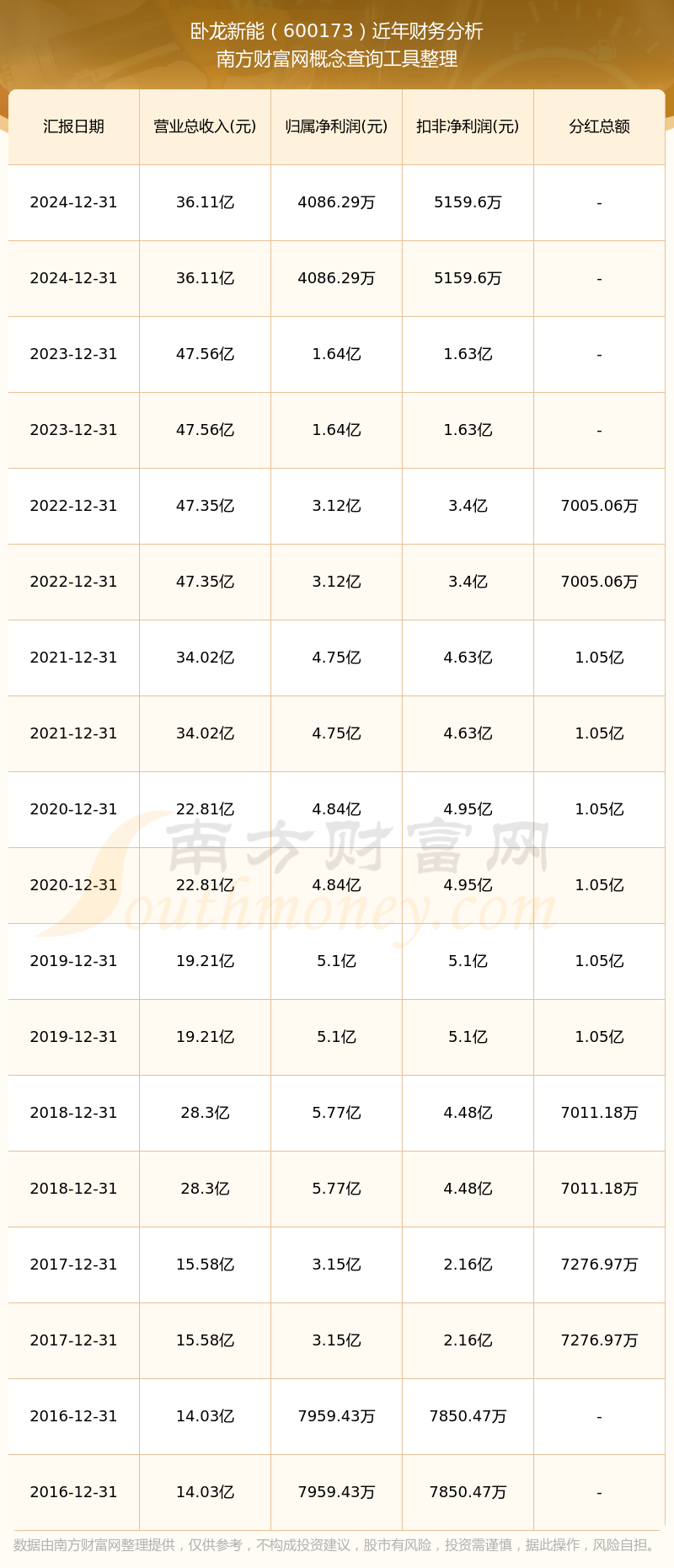 2024年臥龍新能總營收36.11億,同比增長-24.08%;凈利潤4086.29萬,同比增長-75.15%;銷售毛利率14.93%。