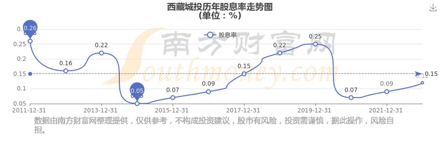 近年西藏城投年度股息率走勢(shì)如下圖: