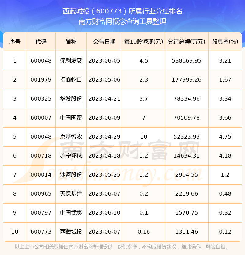 二、西藏城投600773行業(yè)分紅排名
