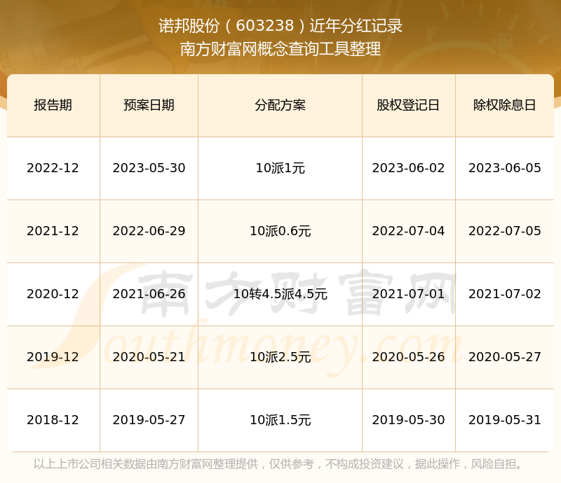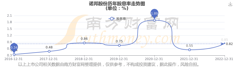 諾邦股份最新一次公布的分紅方案:10派1元。