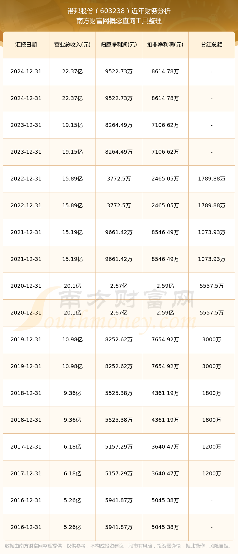 2024年諾邦股份總營收22.37億,同比增長16.8%;凈利潤9522.73萬,同比增長15.22%;銷售毛利率14.8%。