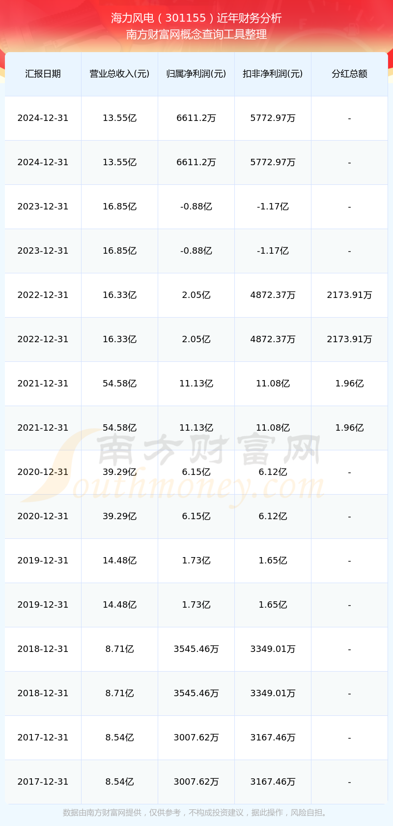 近年海力風(fēng)電分紅派息情況如下表所示: