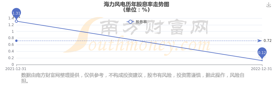 海力風(fēng)電歷年股息率走勢如下圖: