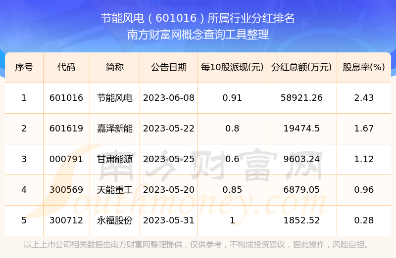 二、節(jié)能風(fēng)電601016行業(yè)分紅排名