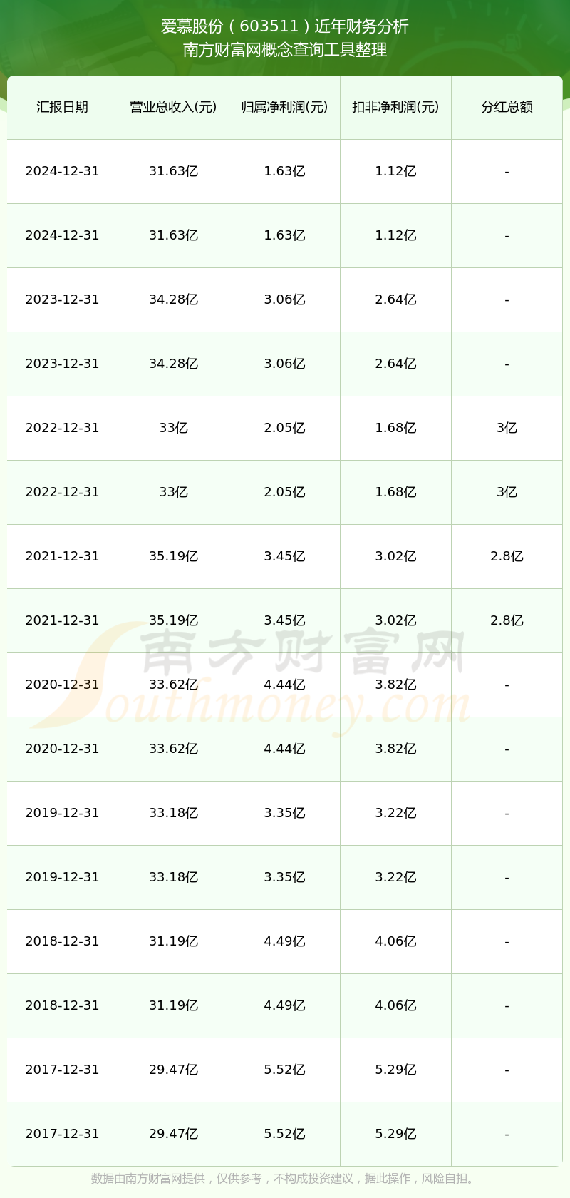 2024年愛慕股份總營收31.63億,同比增長-7.72%;凈利潤1.63億,同比增長-46.56%;銷售毛利率65.17%。