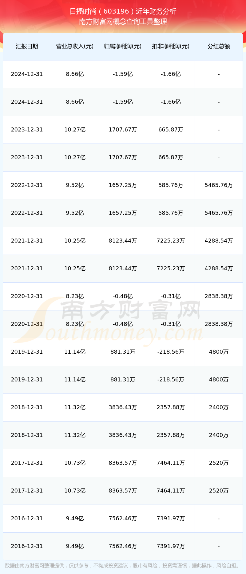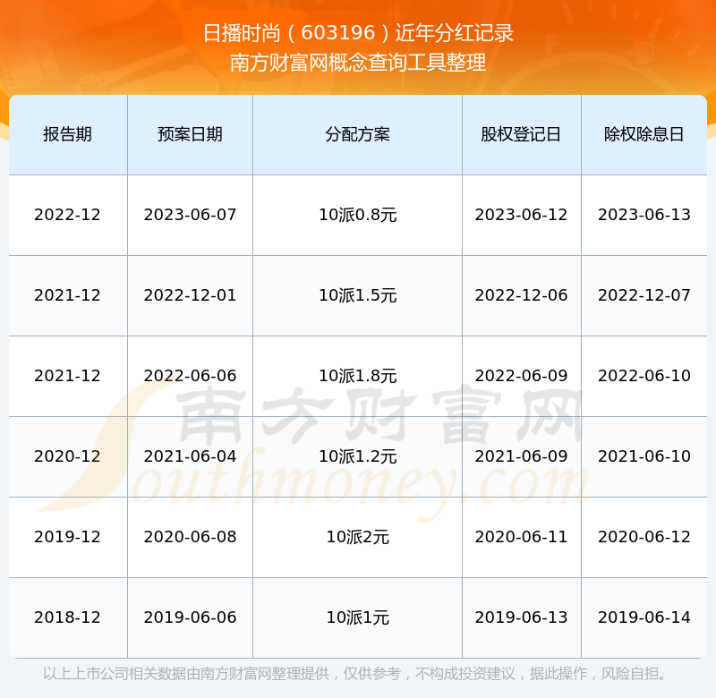 近年日播時(shí)尚分紅派息情況如下表所示: