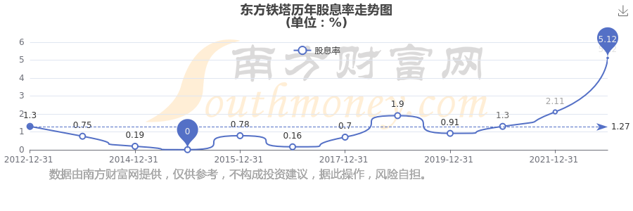 近年東方鐵塔年度股息率走勢如下圖: