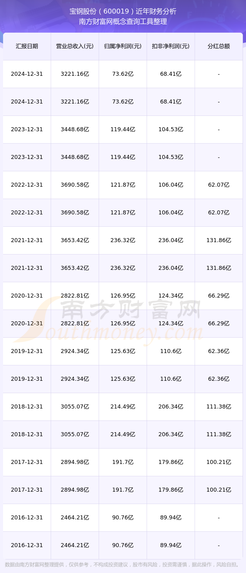 寶鋼股份公司2024年實(shí)現(xiàn)營(yíng)業(yè)收入3221.16億元,同比增長(zhǎng)-6.6%;凈利潤(rùn)73.62億元,同比增長(zhǎng)-38.36%;毛利率5.45%。