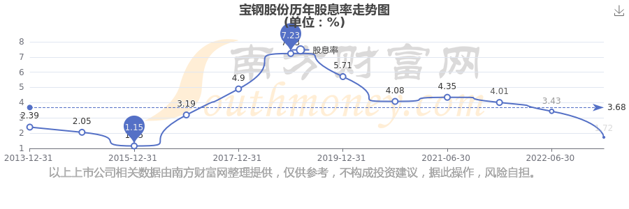 寶鋼股份歷年股息率走勢(shì)如下圖: