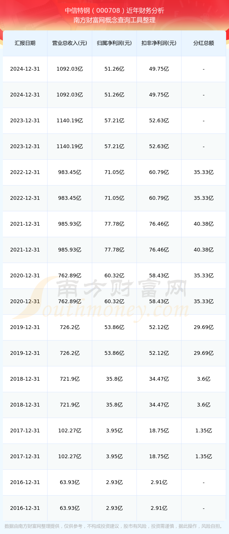 近年中信特鋼分紅派息情況如下表所示:
